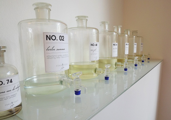 Nel cuore di Berlino, ad un passo dalla caotica Friedrichstraße, è possibile trovare un angolo di paradiso inaspettato. Un paradiso che ha un nome: Frau Tonis, una vera e propria boutique del profumo. In una grande sala dal design minimal trovano il loro posto decine e decine di bottiglie di vetro contenenti le più disparate fragranze: la scelta varia da note delicate, cipriate e dolci, a sfumature fresche di bosco e muschiate, fino ad arrivare al profumo terreo del tabacco o del cuoio. Profumo come ispirazione. E’ questa la filosofia di Stefanie Hanssen e Christoph Niedermeier, fondatori del marchio e sostenitori di una ricerca che sicuramente condivide ogni donna: quella del profumo perfetto. Un’essenza che non può essere scelta per noi dalle aziende o da un gruppo di testers, ma che deve essere il prodotto di una sperimentazione individuale, a volte molto lunga e laboriosa. Nella boutique Frau Tonis vi assicuro che è tutto più semplice: senza limiti di tempo (e d’obbligo d’acquisto) è possibile annusare, vaporizzare e miscelare le fraganze a proprio piacimento, seguendo un percorso olfattivo ben strutturato e ottenendo senza dubbio la fragranza hand-made che stavamo cercando. E dato che anche l’occhio vuole la sua parte, vi assicuro che il packaging, semplice ed elegante, non disattende le aspettative.