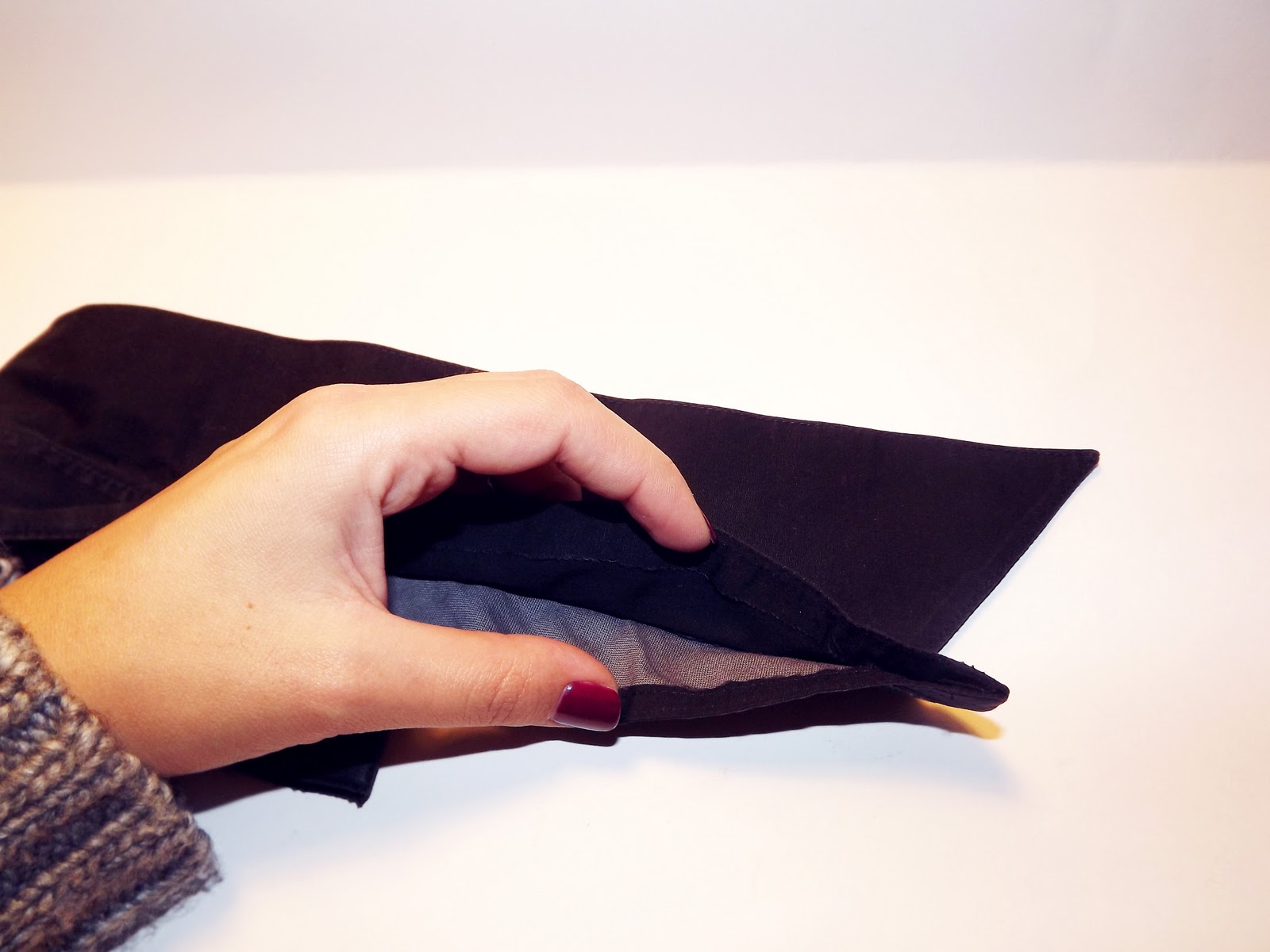 Ora dobbiamo cucire i due lembi di stoffa e chiudere il colletto: