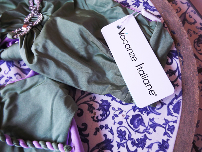 Quello che vedete nelle foto è il costume che ho scelto: i fiocchi sullo slip permettono una regolazione ottimale sui fianchi, il colore risalta l’abbronzatura (ancora lontana purtroppo!), il tessuto è molto morbido e avvolgente ed inoltre è completamente foderato, onde evitare sgradevoli trasparenze. Mi sono concessa lo sfizio dell’applicazione sul top che rende il bikini più particolare, che ne pensate?