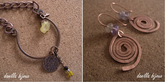Realizzo quasi esclusivamente accessori femminili con una particolare attenzione per gli orecchini, una mia grande passione. Devo dire che in questi ultimi anni ho sperimentato molto, cambiando genere e materiali, ma è il rame la mia vera e unica passione; scoperto solo da poco tempo è come se lo lavorassi da una vita, mi piace pensare che il solo fatto di essere nata in uno dei centri più importanti per la lavorazione artistica del rame in Abruzzo (sto parlando di Guardiagrele) ha lasciato in me una qualche impronta, una vocazione… Anche se un po’ tardiva!