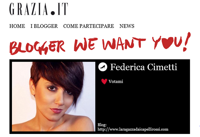 The voting to become IT Blogger for Grazia.it have opened this afternoon, I really need you and your support! If you believe that my blog and my work should be rewarded CLICK HERE to access my profile, you can vote for me through the button you see in the picture, you have one vote every day!