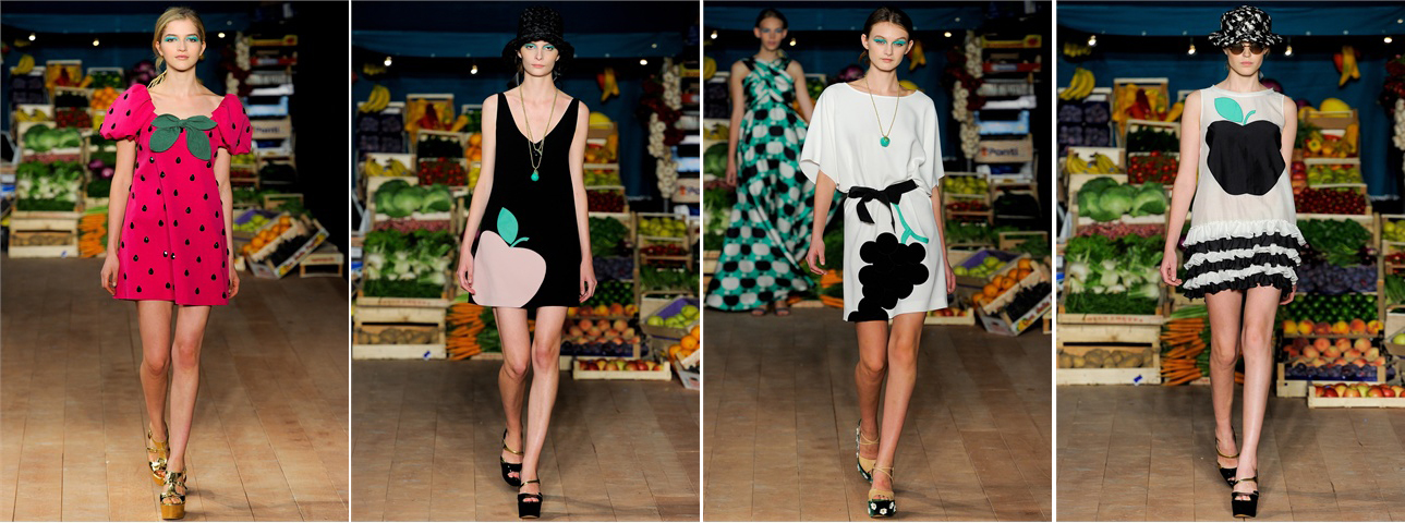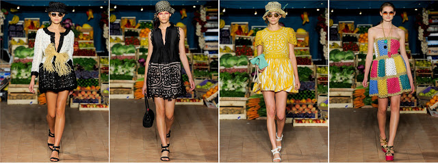 LE STOFFE: Si confermano le stampe fiori e frutta. Allegre, colorate, veramente cheap! Non mancano accessori e inserti in tricot.