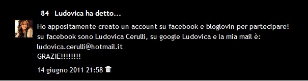 E’ il commento della fortunatissima Ludovica, complimenti!!!!!