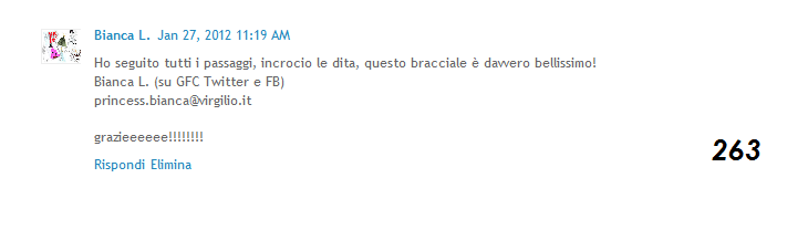 posso decretare un solo vincitore… Il commento fortunato è il n° 263, di Bianca L.