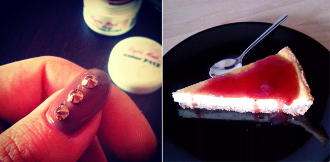 Home-made: unghie borchiate (trovate il tutorial QUI) e cheesecake alle fragole