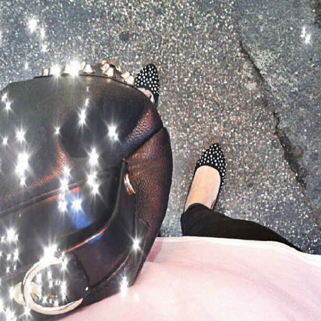 Io e la mia bellissima borsa borchiata acquistata su Oasap siamo uscite per scattare delle foto outfit, domani pubblicherò tutti gli scatti!