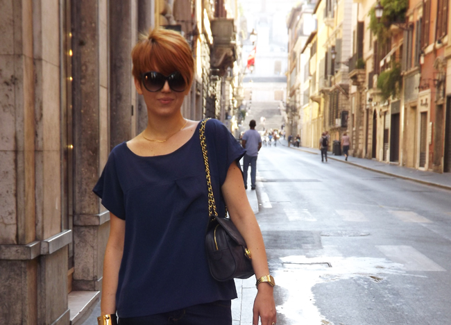 Questo è l’outfit ultra comodo indossato per la conferenza stampa Raffaella Curiel e per un giro fra le strade del centro di Roma (alle mie spalle Via dei Condotti semideserta. Incredibile vero?).