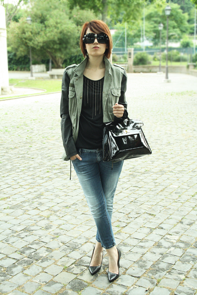 Carina la giacca e mi piace l’abbinamento pelle, militare 🙂