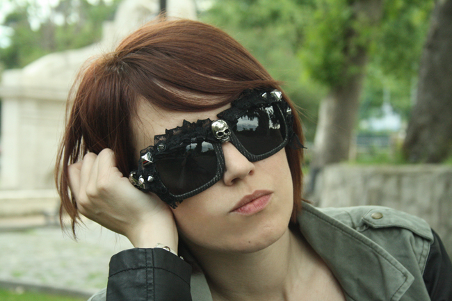 bellissima l’idea del dettagli del teschietto sugli occhiali, la adoro !!