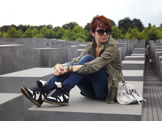 Ecco alcune foto outfit scattate a Berlino nelle quali potete vedere le mie nuove sneakers Isabel Marant. Contro ogni aspettativa si sono rivelate delle ottime compagne di viaggio! Un look semplice e comodo per passeggiare fra le strade del centro città, ad un passo dalla famosa Brandenburger Tor e da Potsdamer Platz. Berlino è certamente una città fuori dal comune: gran parte degli edifici antichi sono stati distrutti dai bombardamenti e, durante l’opera di ricostruzione post-bellica, sono stati sostituiti da moderne strutture in vetro e acciaio. Convivono così nel cuore della city ossimori architettonici che senza dubbio incantano l’occhio del turista. L’apice di questo contrasto viene raggiunto, a mio avviso, proprio a Potsdamer Platz, situata nel centralissimo Tiergarten. Devastata dalla guerra e divisa a metà dal muro di Berlino, questa piazza è il simbolo dell’ambizioso progetto di ricostruzione di Berlino. Grattacieli in vetro, la Walk of Fame europea ed il Sony Center sono solo alcuni esempi della bellezza suggestiva di questo luogo. Vi lascio alle foto, che come sempre valgono più di mille parole. Aspetto i vostri commenti!