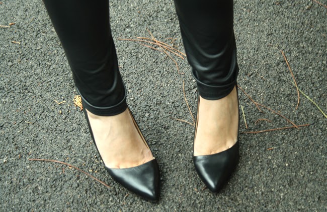 Per creare un contrasto l’ho abbinato ai jeggings in ecopelle e alle decolleté a punta di Buffalo.