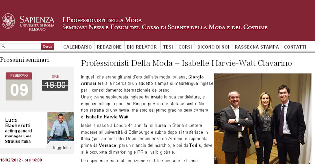 I’ve just learned that my article was choosen for the session press of the official site Moda Sapienza.
