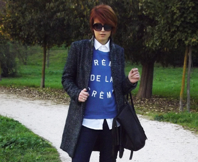As I told you in this post I was waiting for the Zoe Karssen sweatshirt you can see here. It was sold-out on all the shops online but when it cames back available on Zoe Karssen official site I couldn’t miss it! I’ve chosen the blue one, perfect with jeans, my new H&M coat and my white and blue Isabel Marant. What do you think about this outfit? 🙂