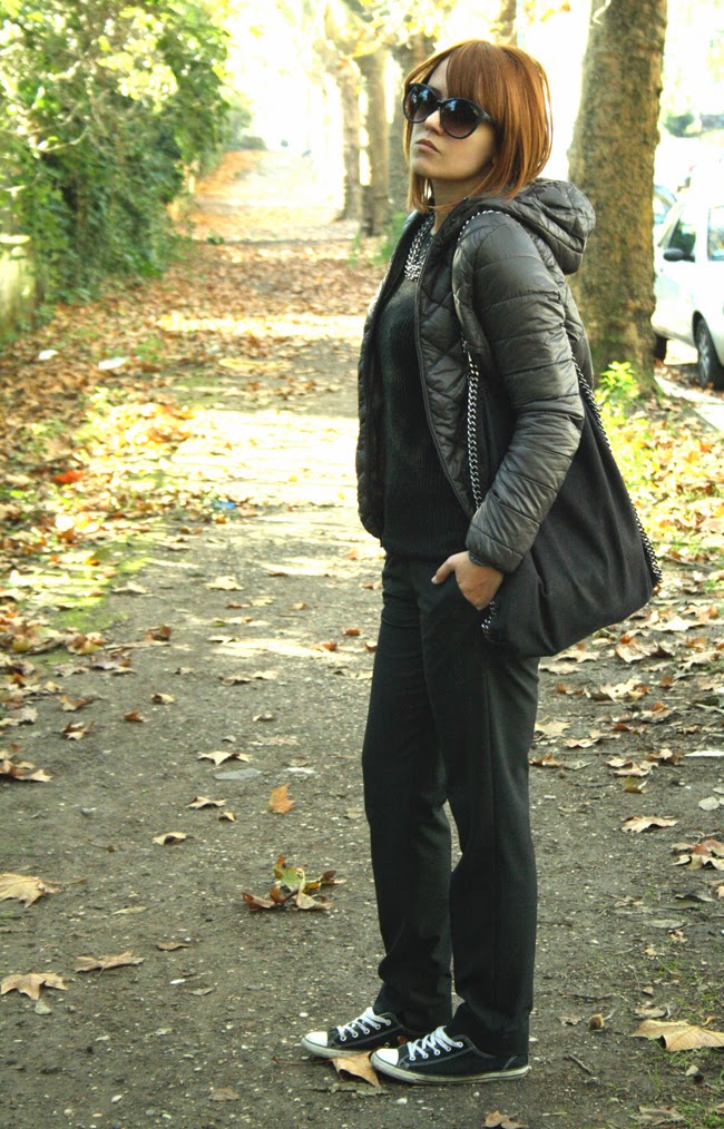 Mi piace molto questo look a contrasto , carino il piumino e la borsa la adoro! un bacio